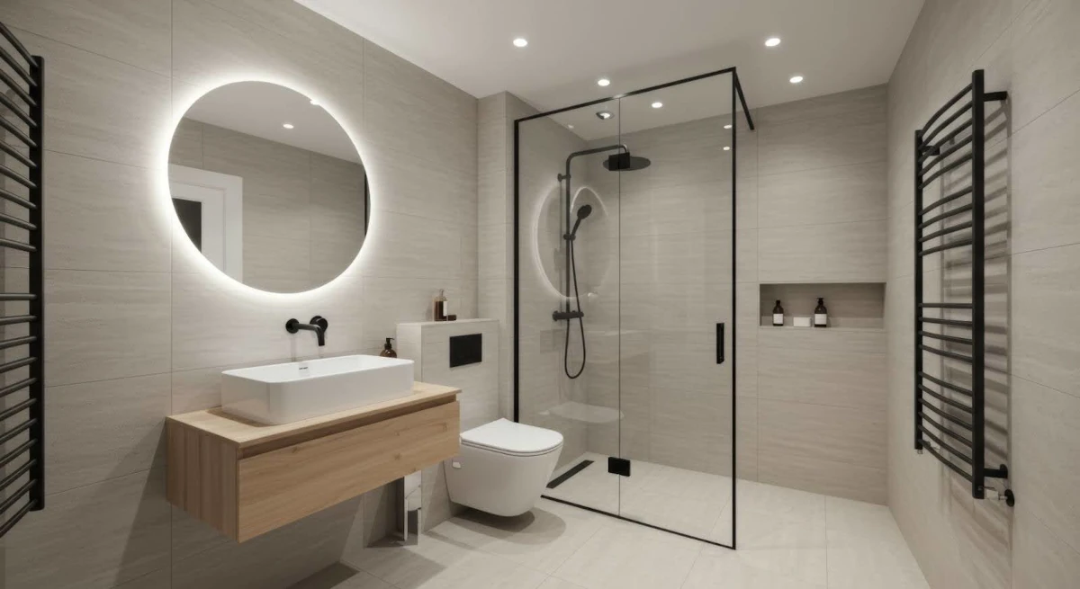- Iluminat funcțional, de exemplu integrat cu o oglindă, care permite reglarea temperaturii de culoare și adaptează lumina la ora zilei și la nevoile curente.