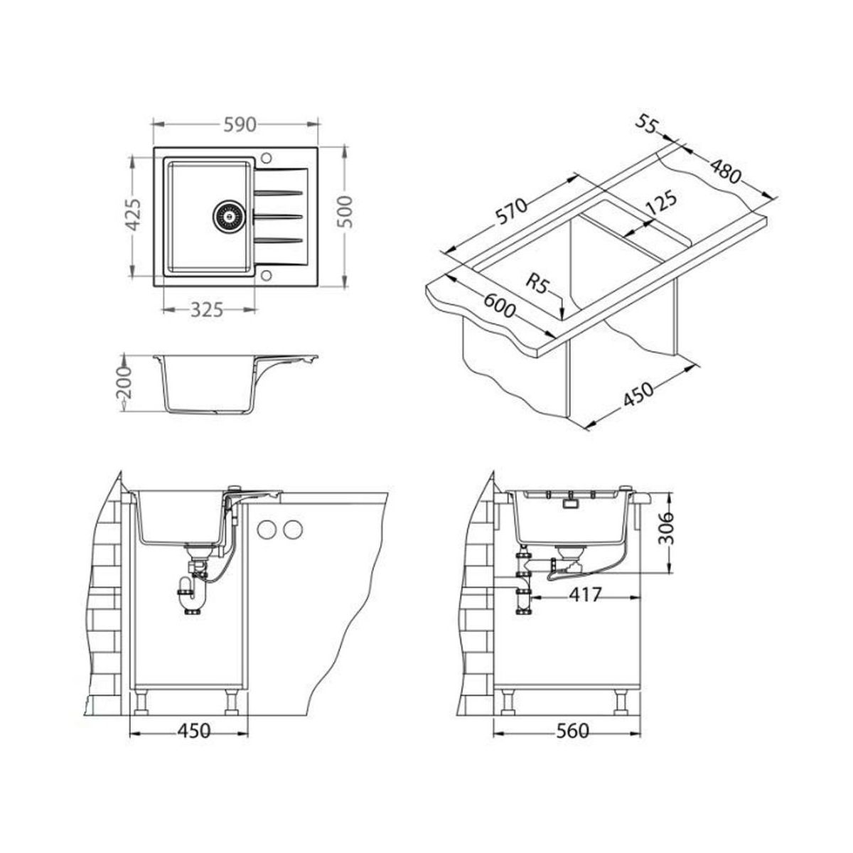 - material: Granital (conține aproximativ 80% particule de granit - cuarț, combinate cu un liant de rășină de înaltă calitate, aproximativ 20%)