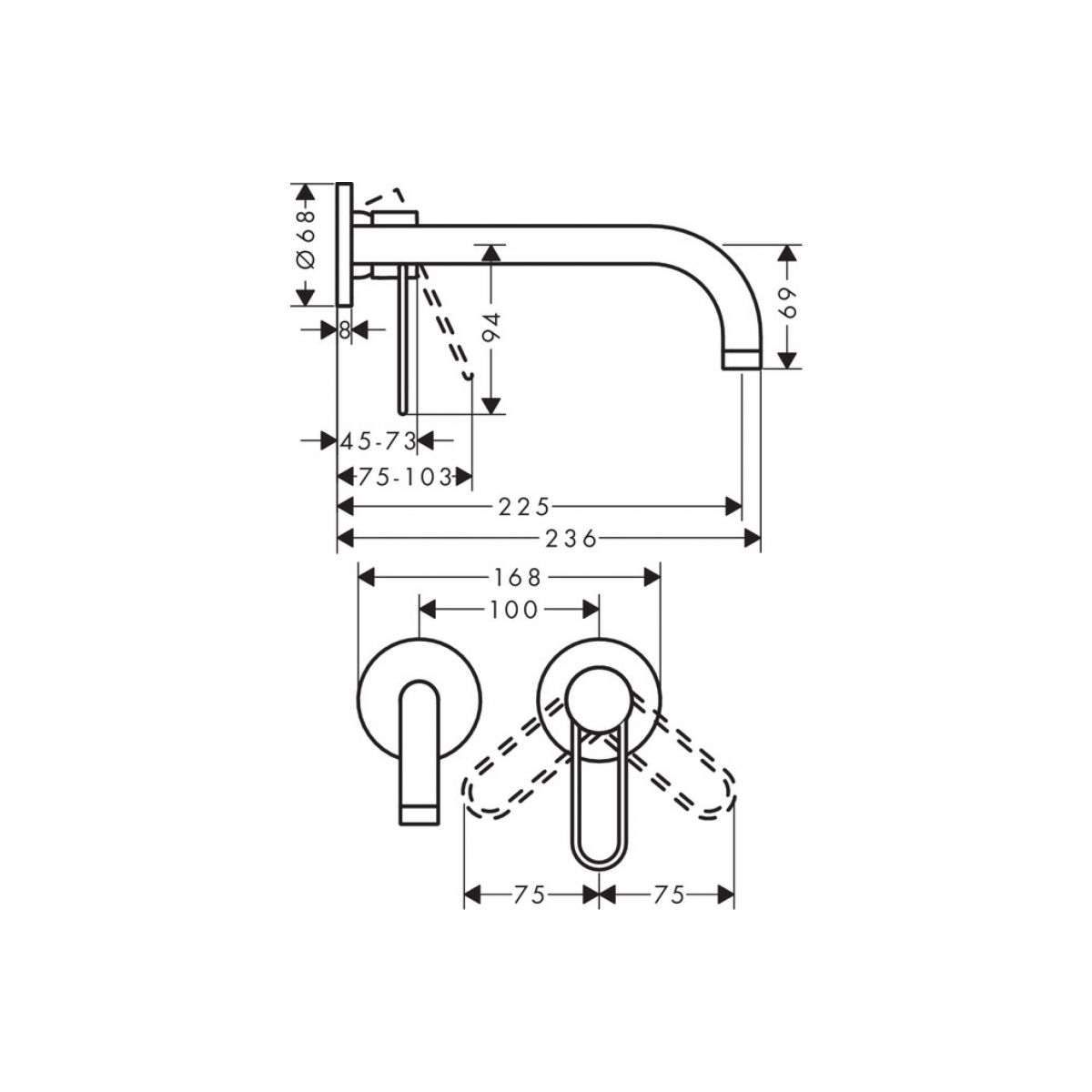 - mânerul poate fi poziționat în stânga sau în dreapta gurii de scurgere