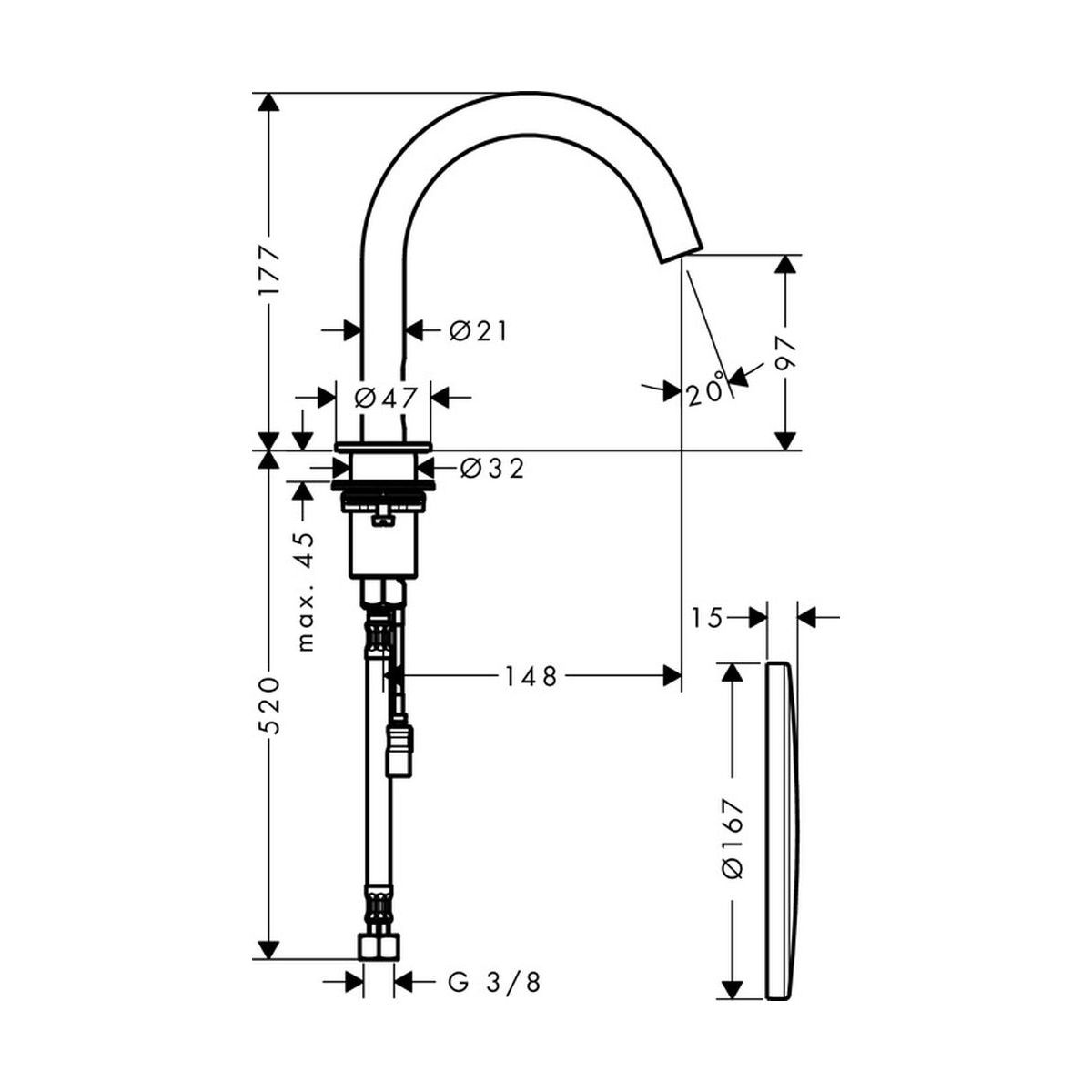 Axor Uno baterie lavoar stativ electrică || 38010800