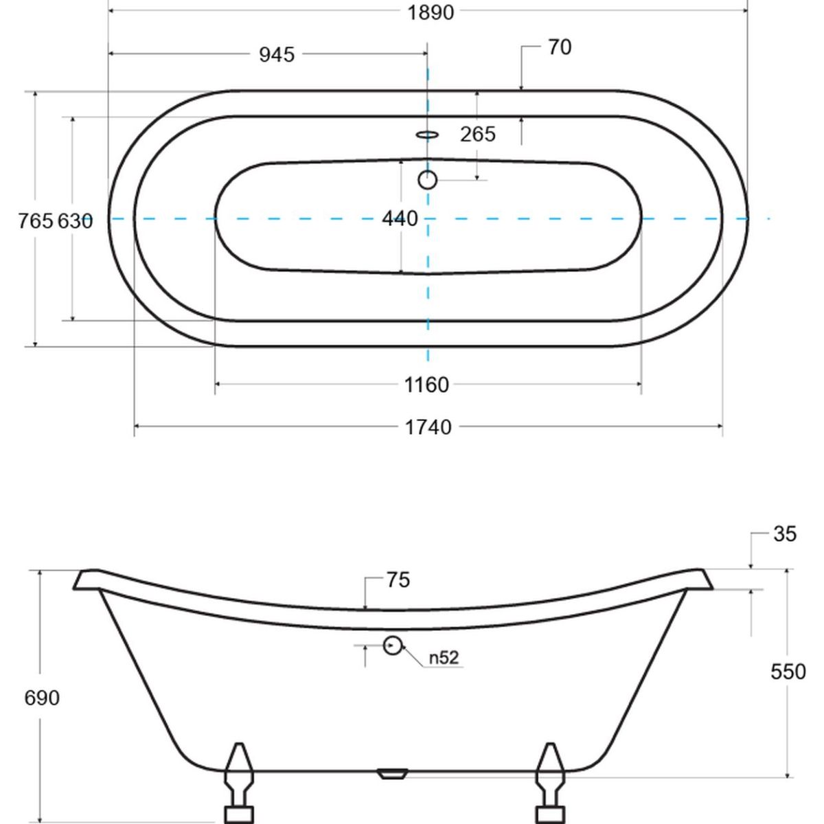 Besco Amelia cadă freestanding 189x76.5 cm ovală alb #WKA-190W+C