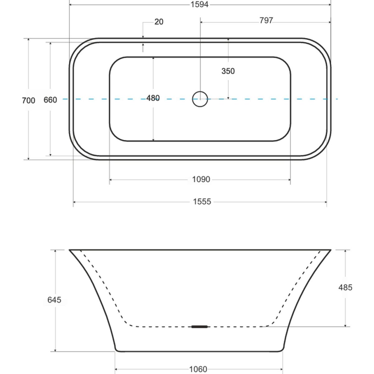 - cadă din material Mineral DuraBe (un amestec de marmură naturală, granit și rășină)
