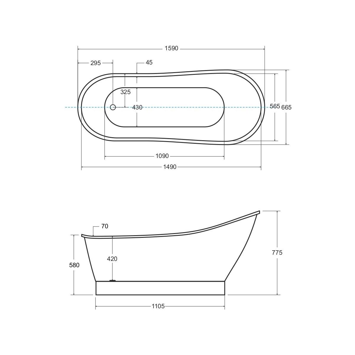 - latura lungă: 159 cm