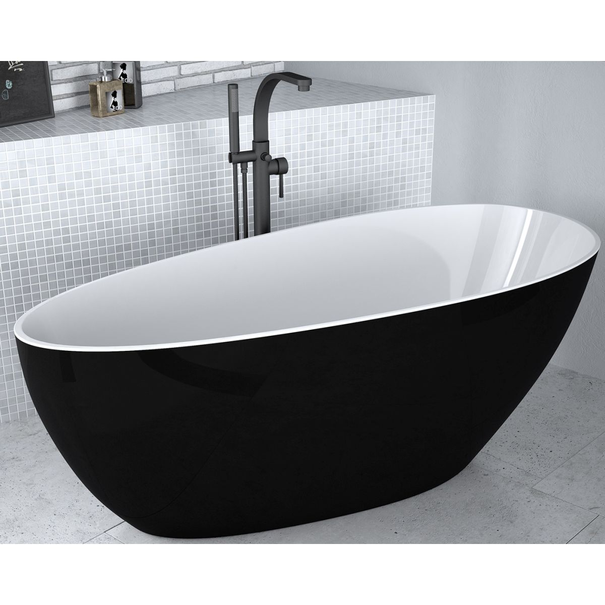 Besco Goya cadă freestanding 160x70 cm ovală alb-negru-bicolor #WMD-160-GBW