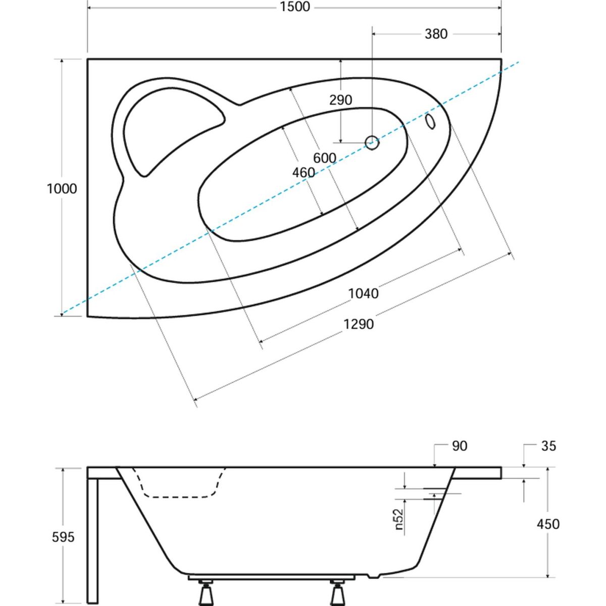 - latura mai lungă (A): 150 cm