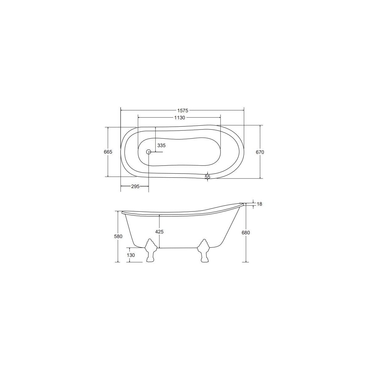 Besco Olaya cadă freestanding 157.5x68 cm ovală bicolor #WAO-160-GGB