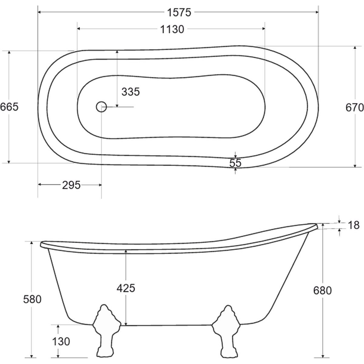 Besco Olaya cadă freestanding 157.5x68 cm ovală bicolor #WAO-160-GZB