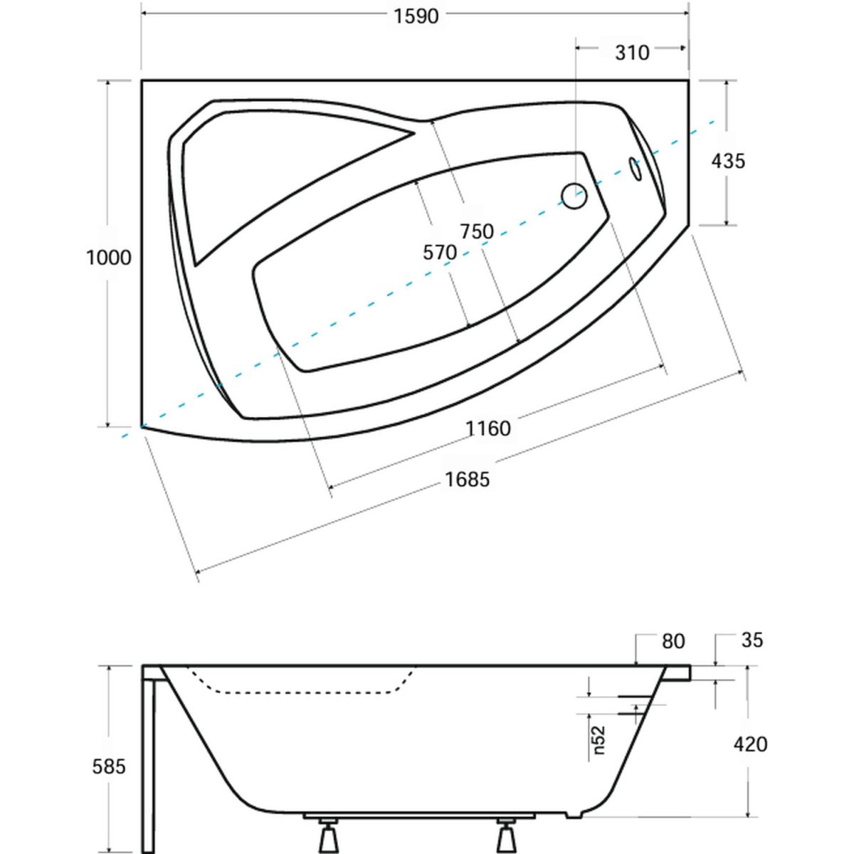 - latura mai lungă: 159 cm