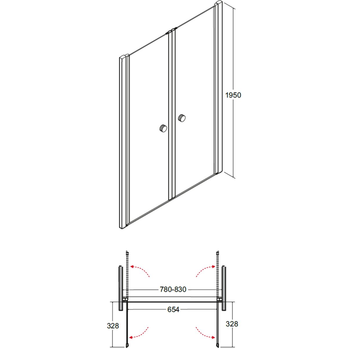 Besco Sinco Due uși de duș 80 cm înclinabilă crom luciu/sticlă transparentă DSD-80