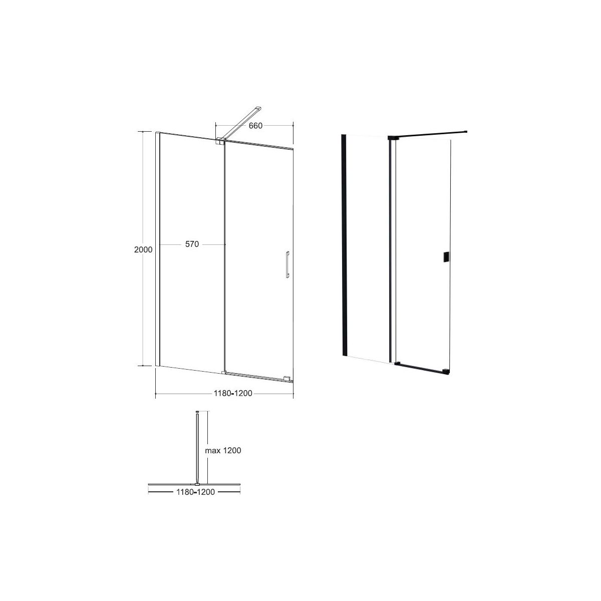 Besco Vayo Black perete de duș cu ușă 120 cm negru mat/sticla transparentă VYB-120-200C