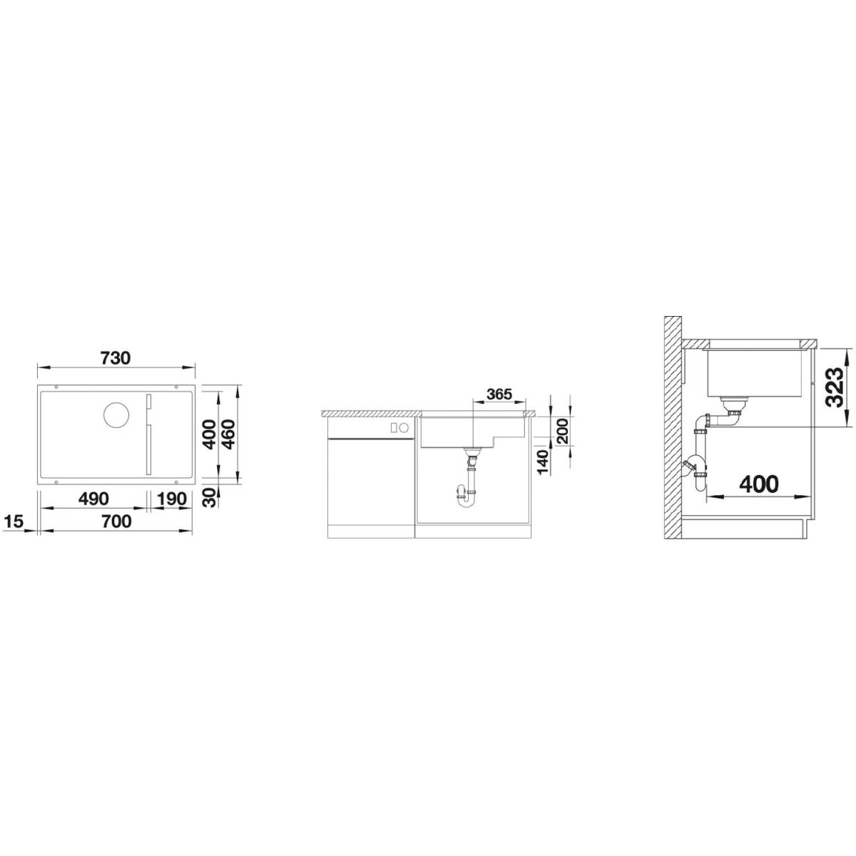 Blanco Subline 700-U Level chiuvetă din granit 70x40 cm negru 526003