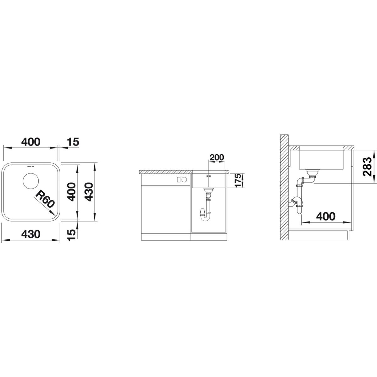 Blanco Supra 400-U chiuveta din otel 43x43 cm oţel 518201