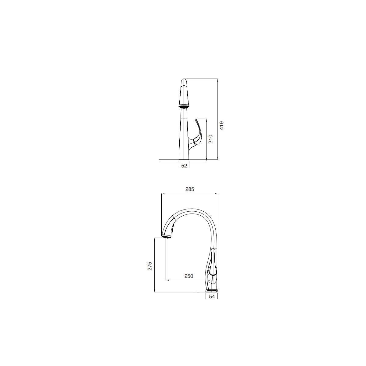 - mânerul mixerului pivotează în față, făcând posibilă instalarea mixerului între o chiuvetă încastrată și un perete.