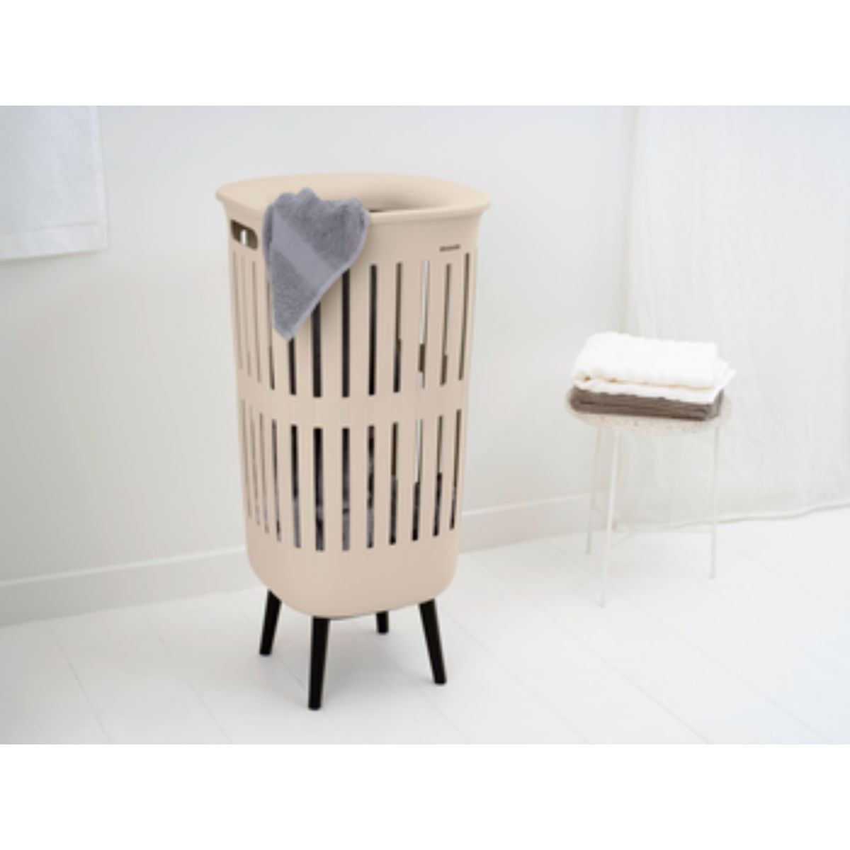 - Ideal pentru colectarea rufelor — coș de rufe elegant și zvelt, cu capac și picioare solide.