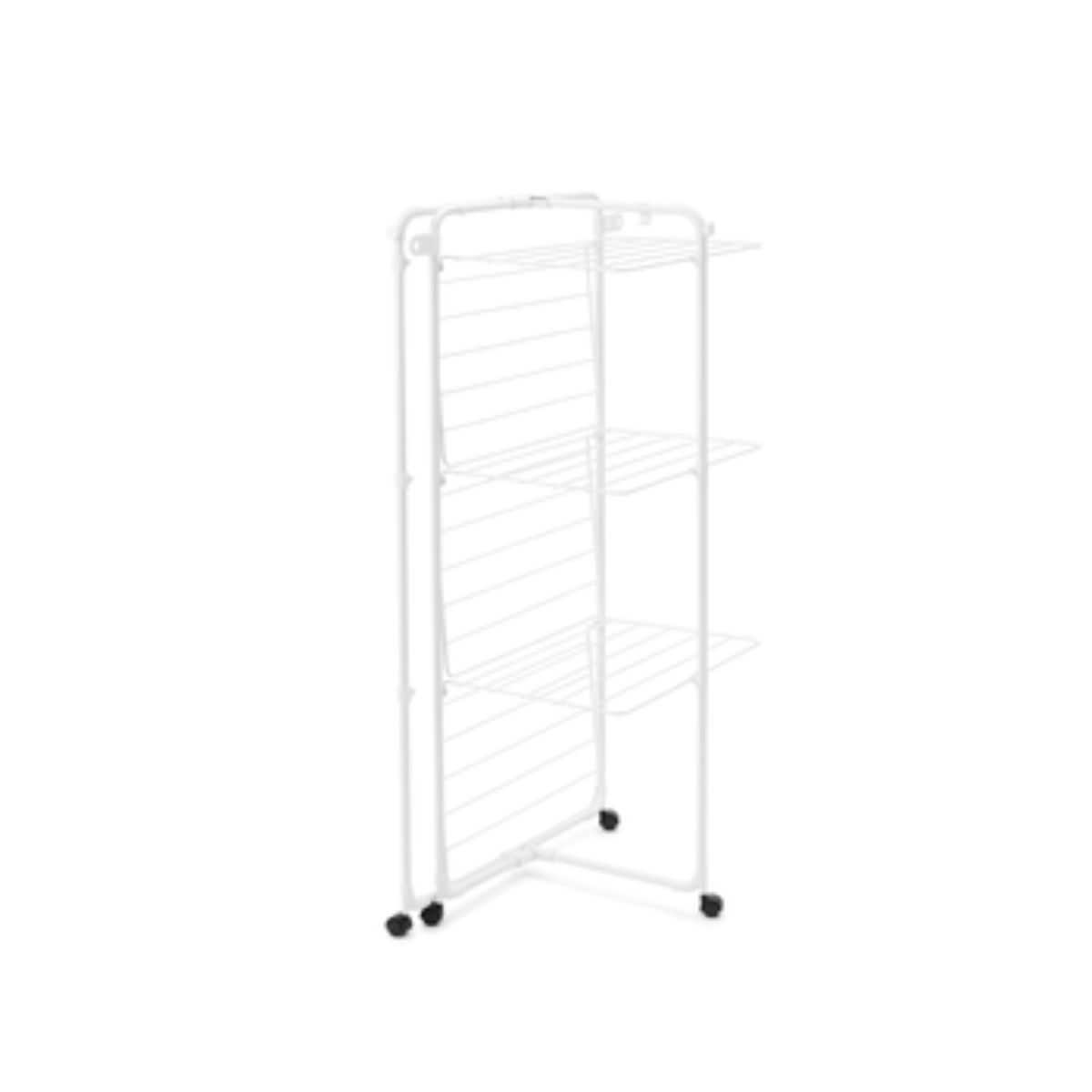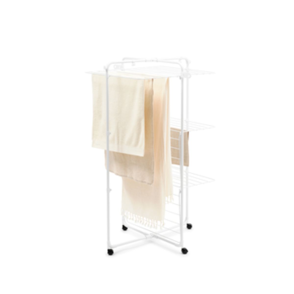 Economisiți energie electrică prin uscarea rufelor în mod natural și economisiți spațiu prin agățarea lor pe uscătorul HangOn Tower de la Brabantia! Cu 23 de metri de suprafață de uscare flexibilă și cârlige suplimentare și suporturi pentru umerașe, acest uscător inteligent ocupă un spațiu minim pe podea, economisindu-vă mult spațiu. Uscătorul are trei niveluri de uscare care pot fi rabatate atunci când este necesar, ceea ce îl face potrivit și pentru uscarea articolelor lungi, cum ar fi prosoapele. Cele patru roți îl fac ușor de întors și de mutat. Odată ce rufele sunt uscate, acestea pot fi pliate pentru depozitare compactă. Blocajele de transport mențin cadrul în poziție și acționează și ca cârlige. Prin achiziționarea acestui uscător, sprijiniți și organizația WeForest în misiunea sa de a planta mai mulți copaci. Doriți să îl utilizați?