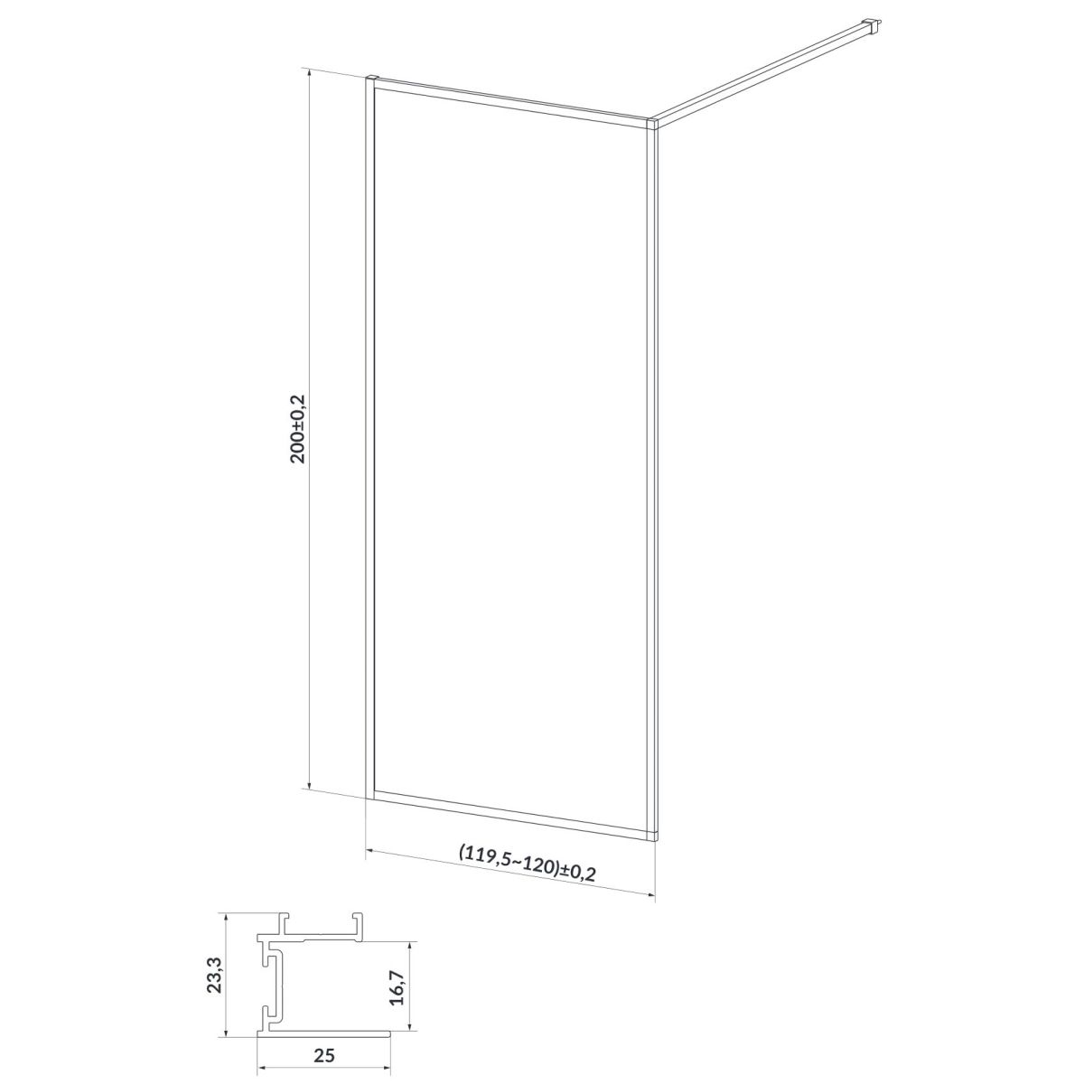 Cersanit Larga perete cabină de duș walk-in 120 cm negru mat/sticla transparentă S932-140
