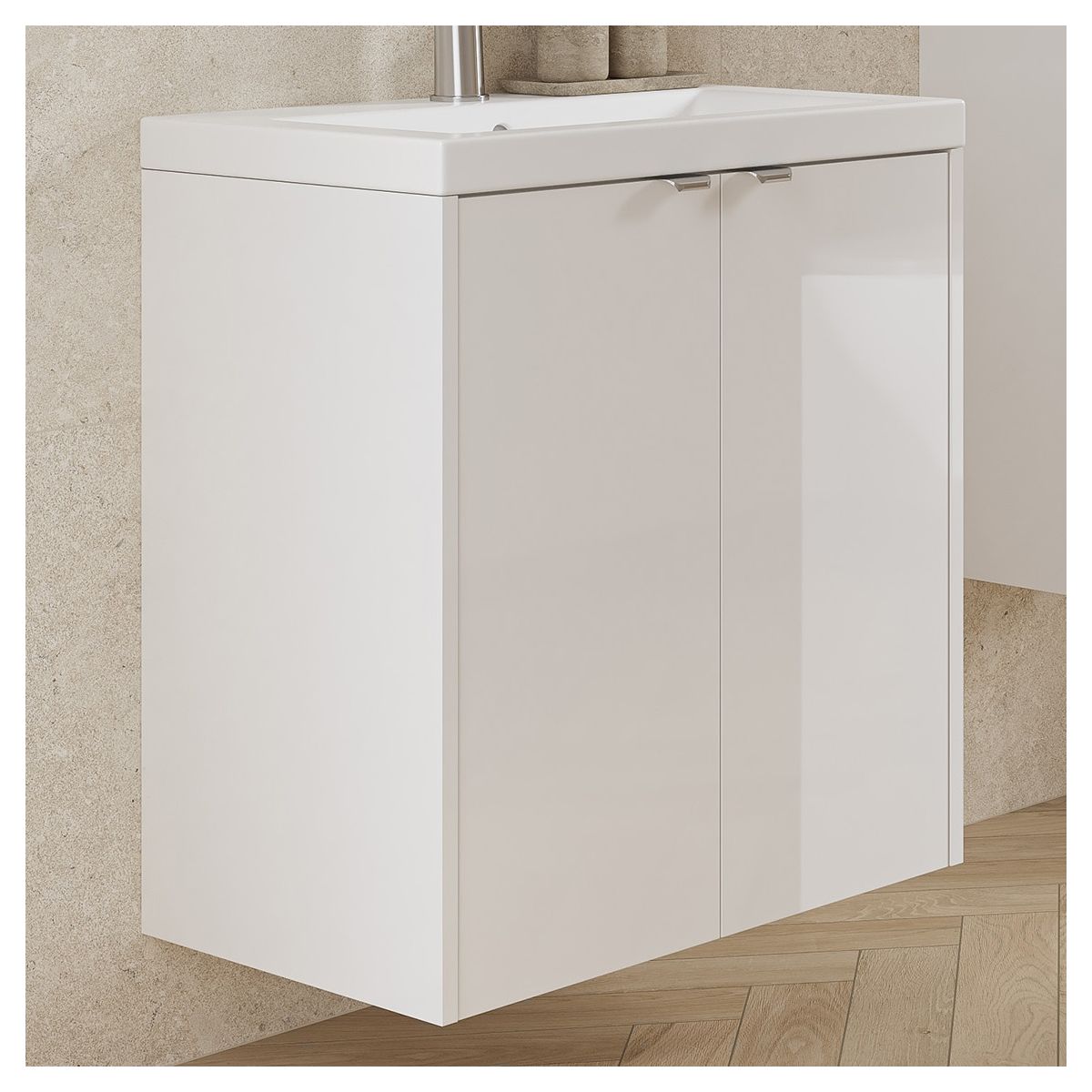 - Dulapul este echipat cu două uși și un raft interior, ceea ce asigură un spațiu confortabil pentru depozitarea produselor cosmetice, a produselor de îngrijire și a accesoriilor de baie. Mecanismul soft close garantează închiderea silențioasă și lină a ușilor, sporind confortul utilizării. Fațada și corpul sunt realizate din plăci aglomerate lăcuite în culoarea albă, ceea ce asigură durabilitate, finisaj estetic și ușurință în întreținere.