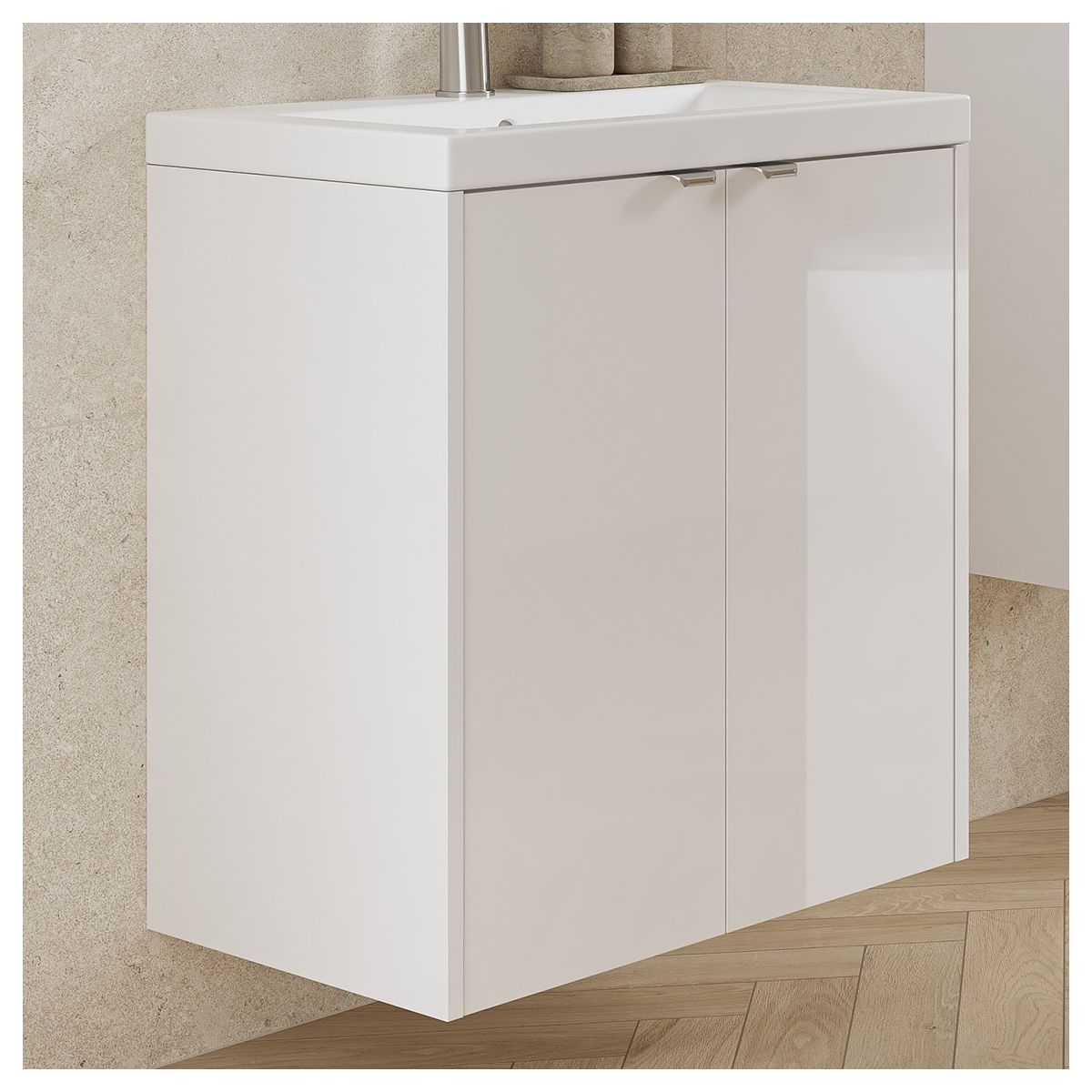 - Dulapul este echipat cu două uși și un raft interior, ceea ce asigură un spațiu confortabil pentru depozitarea produselor cosmetice, a produselor de îngrijire și a accesoriilor de baie. Mecanismul soft close garantează închiderea silențioasă și lină a ușilor, sporind confortul utilizării. Fațada și corpul sunt realizate din plăci aglomerate lăcuite în culoarea albă, ceea ce asigură durabilitate, finisaj estetic și ușurință în întreținere. Dulapul poate fi completat atât cu o chiuvetă încorporată, cât și cu un blat și o chiuvetă de blat, ceea ce oferă o mare libertate în amenajarea zonei de spălare.