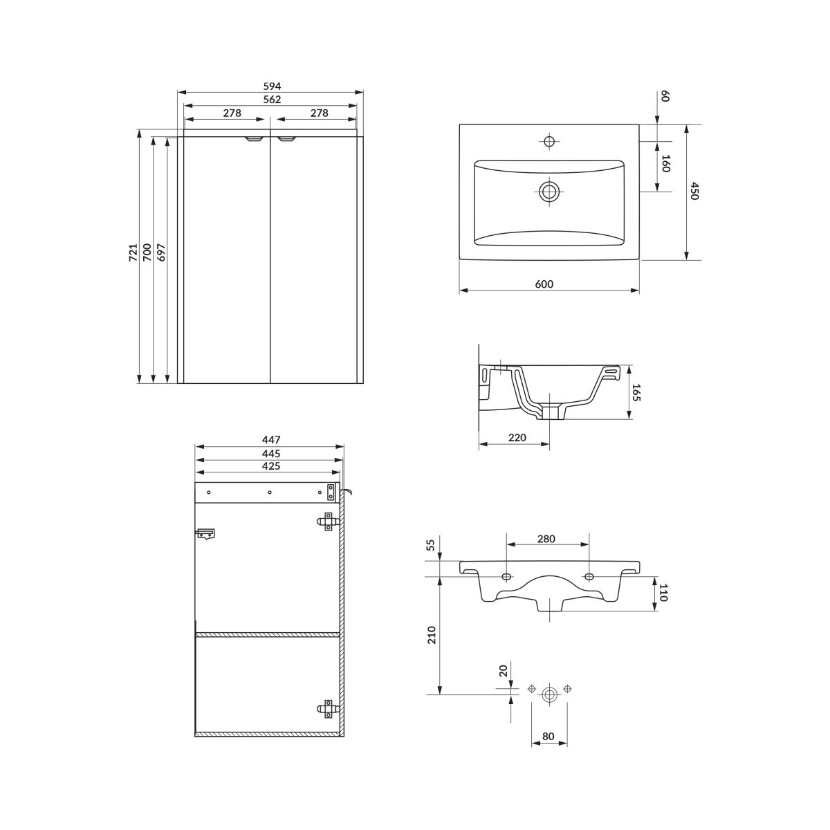 - Mecanismul soft close garantează închiderea silențioasă și lină a ușilor, sporind confortul de utilizare. Fațada și corpul sunt realizate din plăci aglomerate lăcuite în culoarea albă, ceea ce asigură durabilitate, finisaj estetic și ușurință în întreținere. Dulapul poate fi completat cu o blat și o chiuvetă de blat, ceea ce oferă libertate în amenajarea zonei chiuvetei.