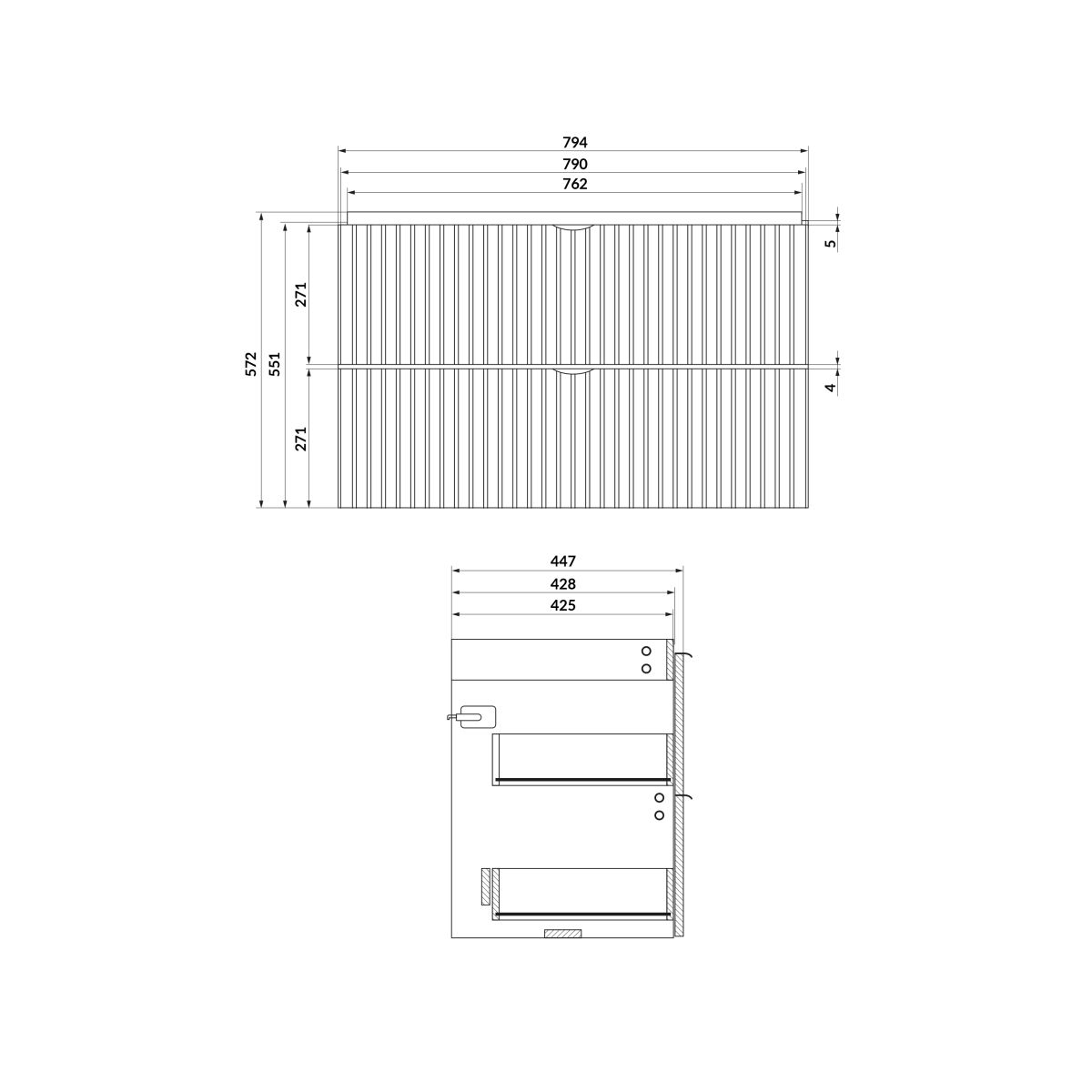 - dulap cu dimensiuni de 79,4 × 44,7 × 57,2