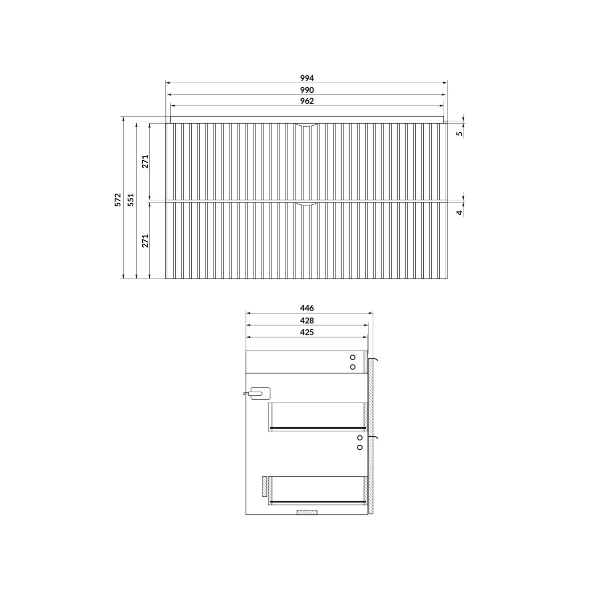 - dulap cu dimensiunile 99,4 × 44,6 × 57,2