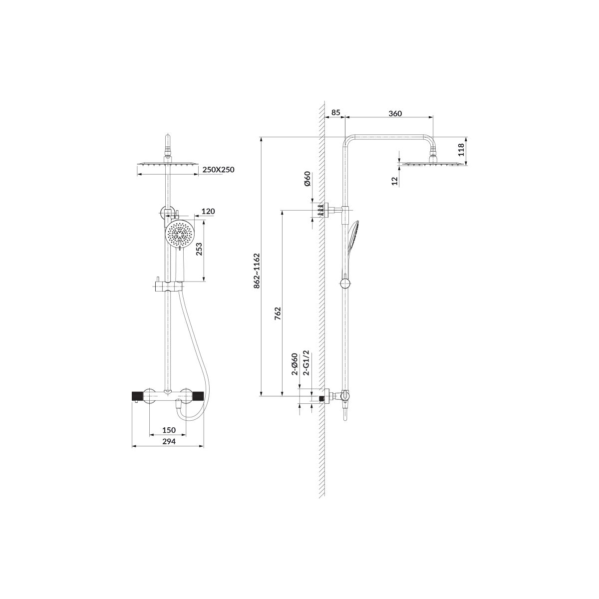 Cersanit Zen set de duș perete cu termostat cu duș de ploaie negru S951-783