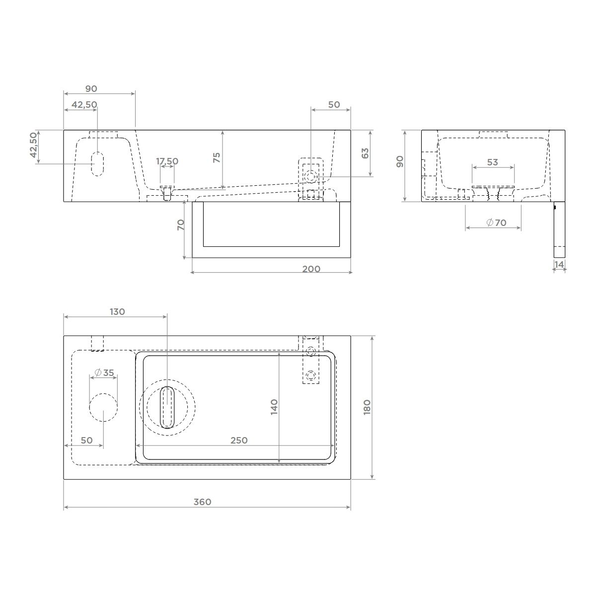 Clou Flush lavoar 36x18 cm dreptunghiular clasică-de blat alb CL/03.08032.02