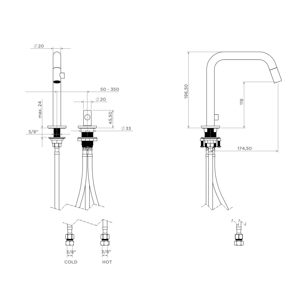 - acestea sunt montate pe robinete unghiulare (3/8 inch) care nu sunt incluse în sfera de furnizare