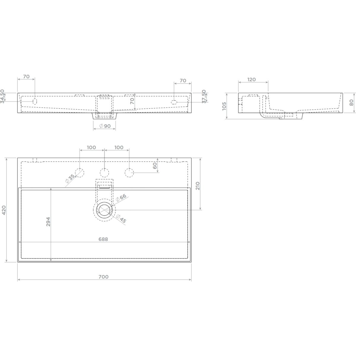 Prețul este pentru lavoar fără orificiu pentru mixer.