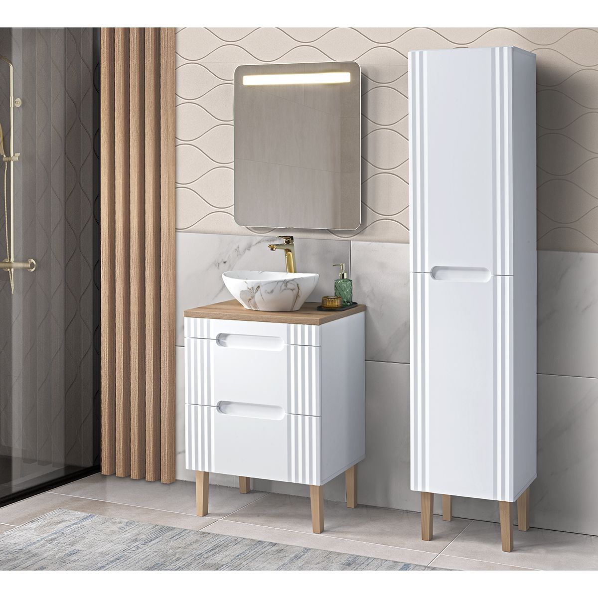 Fiji este o colecție care combină modernitatea și stilul atemporal. Mobilierul din această linie poate fi asamblat atât ca mobilier suspendat, cât și în picioare, pe picioare de lemn. Colecția include un piedestal înalt, dulapuri sub chiuvetă și blaturi de culoare Coastal Oak Evoke în dimensiuni de 60 cm, 80 cm, 100 cm și 120 cm. Mânerele au fost înlocuite cu un submătar frezat modern, iar fronturile dulapurilor se disting printr-un pliu delicat pe laterale.