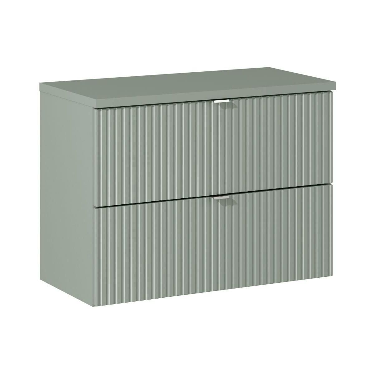 Acest set este caracterizat de o lățime de 80 cm și o adâncime de 40 cm, ceea ce îl face perfect chiar și în băile mici. Culoarea setului este răcoritoare Reed Green, care se potrivește bine cu celelalte elemente ale colecției. Fronturile mobilierului sunt decorate cu rigle verticale frezate, adăugând eleganță și farmec.
