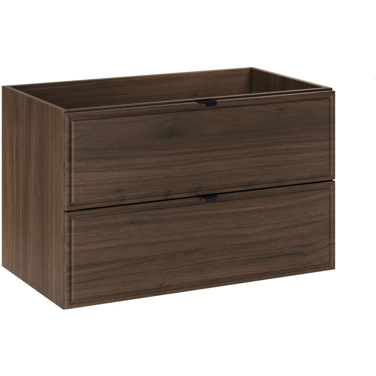 Dulapul pentru chiuvetă de 80 cm din colecția Terra Villa combină eleganța clasică cu stilul modern. Fațadele distinctive, cu un cadru subtil, frezat, atrag atenția prin forma lor atemporală. Decorul Villa Walnut încântă prin culorile sale intense și fibrele naturale ale lemnului, conferind căldură, liniște și un caracter nobil interiorului, în timp ce mânerele subțiri din metal negru completează subtil culorile colecției, subliniind consistența și caracterul modern al acesteia.