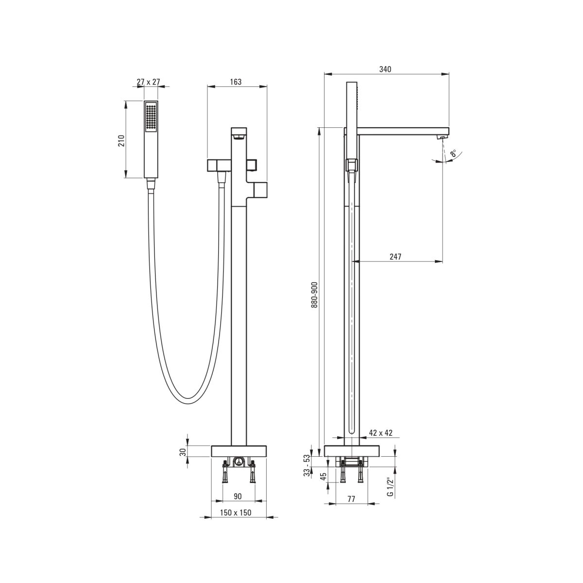 - Înălțimea totală a robinetului [mm]: 900