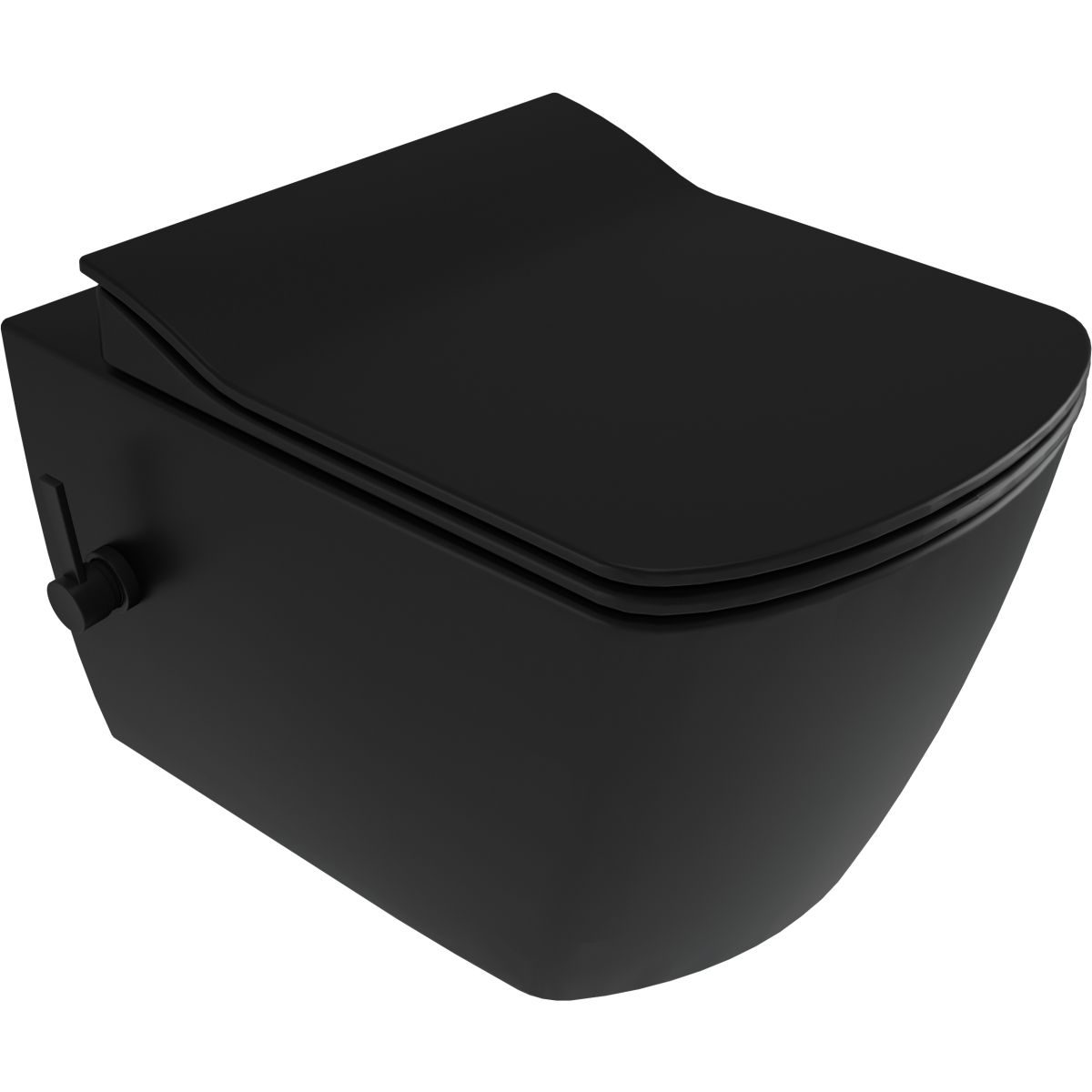 Toaleta neagră Blur cu funcție bidet este soluția ideală pentru cele mai înalte niveluri de igienă și confort. Fabricată din ceramică durabilă, aceasta se integrează perfect în interioarele moderne. Designul fără margine al vasului previne acumularea de bacterii și murdărie, făcând curățarea extrem de ușoară. Este livrat complet cu un scaun Slim care plutește liber și un robinet mixer într-un finisaj negru mat.