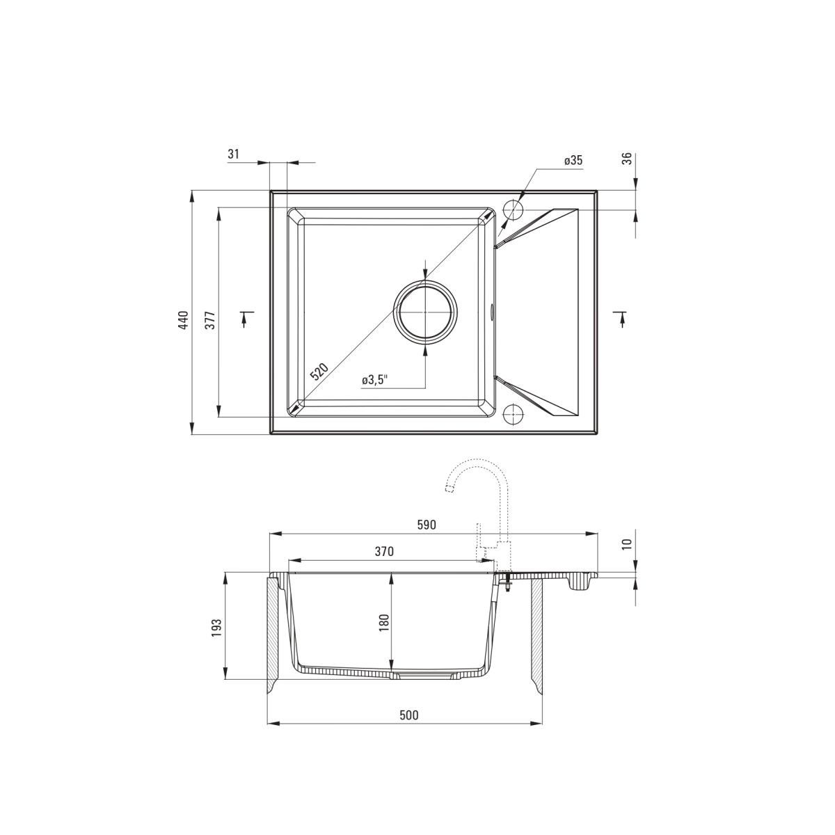 - material: granit rezistent la impact, căldură, pete, șoc termic