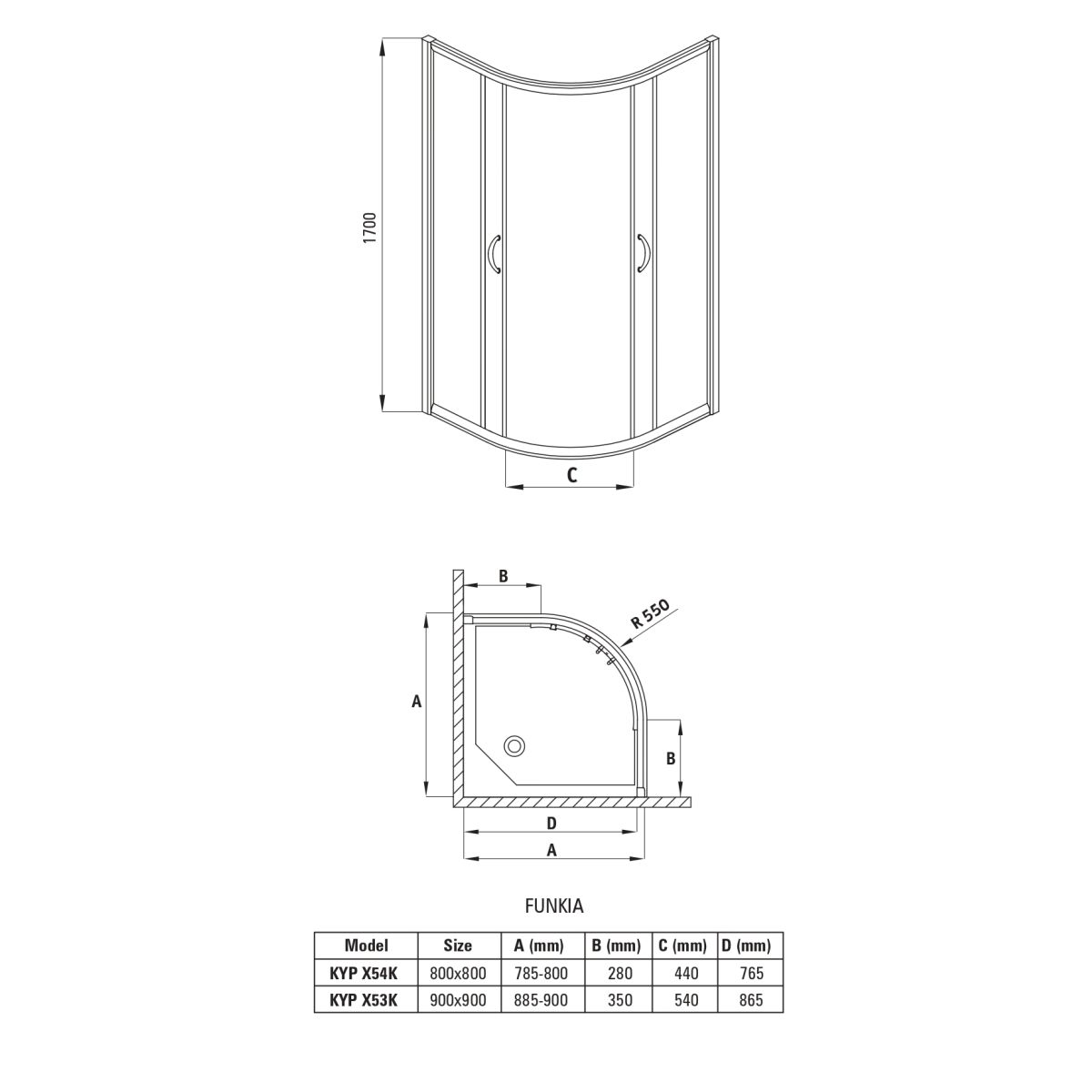 Cabina de duș Funkia este un model semicircular de 90x90 cm. Cabina are sticlă securizată de 5 mm cu un finisaj interesant de grafit. Este acoperită cu Active-cover, ceea ce facilitează menținerea curățeniei produsului. Cabina poate fi montată pe o tavă de duș sau direct pe gresie.