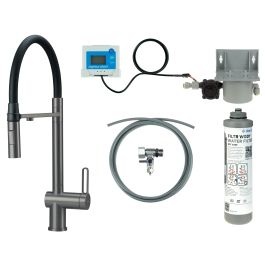 Robinetul magnetic de bucătărie cu sistem de filtrare a apei este o soluție unică care combină eleganța, funcționalitatea și grija pentru sănătate. Finisat într-o culoare originală de titan, robinetul are un bec flexibil cu un suport magnetic. Acest lucru asigură un confort excepțional de utilizare și, în același timp, are grijă de estetică, menținând becul întotdeauna în poziție. Datorită sistemului de filtrare încorporat, robinetul devine o sursă de apă curată și sănătoasă. Această soluție nu numai că elimină necesitatea unor carafe sau sticle suplimentare, dar contribuie și la protejarea mediului prin reducerea consumului de plastic. Setul de filtre inclus elimină eficient clorul, metalele grele, nisipul și alte impurități, îmbunătățind gustul și mirosul apei. Un monitor practic indică momentul în care cartușul filtrului trebuie înlocuit, asigurând o calitate constantă a apei în fiecare zi. Instalarea întregului sistem este rapidă și ușoară, iar utilizarea zilnică este intuitivă și convenabilă.