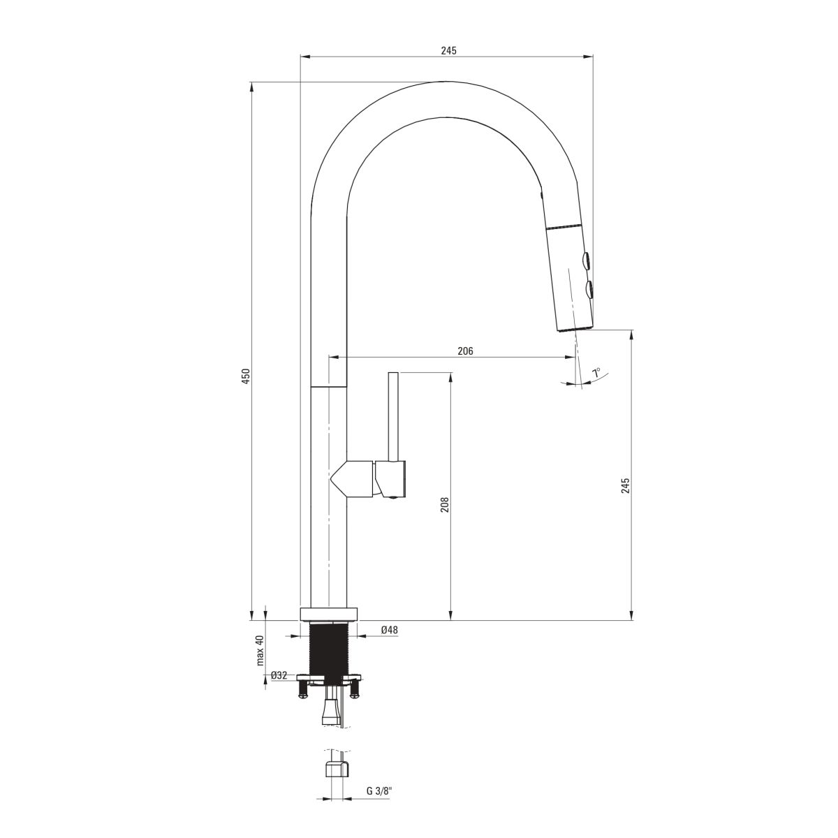 - filet de la instalare: 3/8''