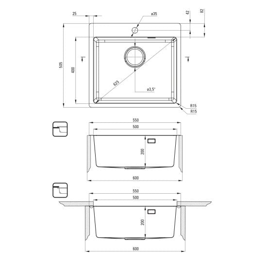 - decupaj în blatul de lucru (încastrat) [mm]: 530 x 485