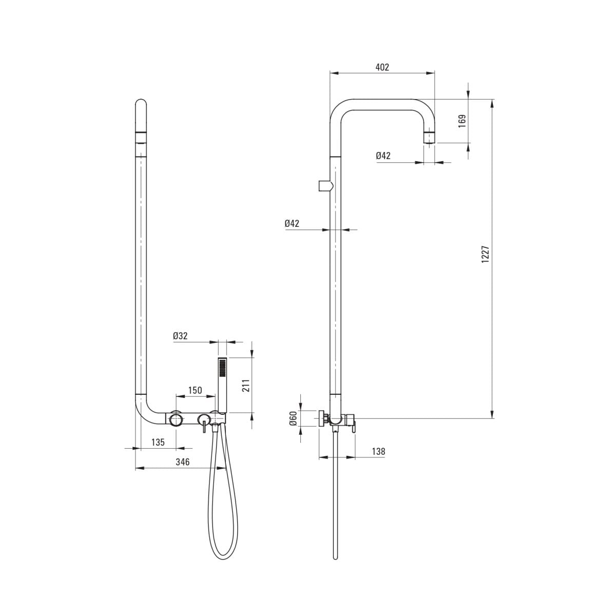 - Inclus: baterie cu comutator, duș ploaie, duș de mână, furtun de duș, tija de duș