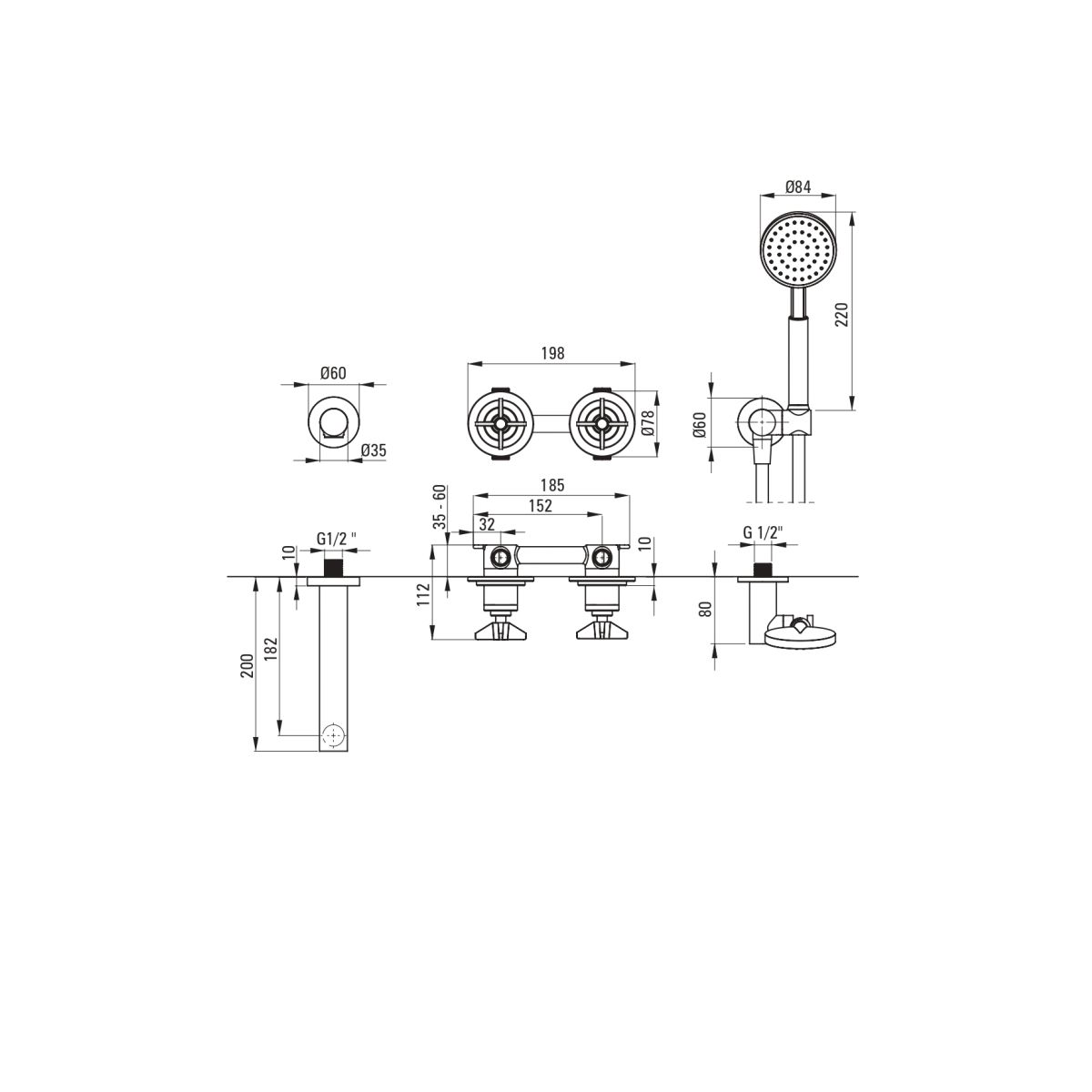 - raza de acțiune a gurii de duș/baie: 18,2 cm