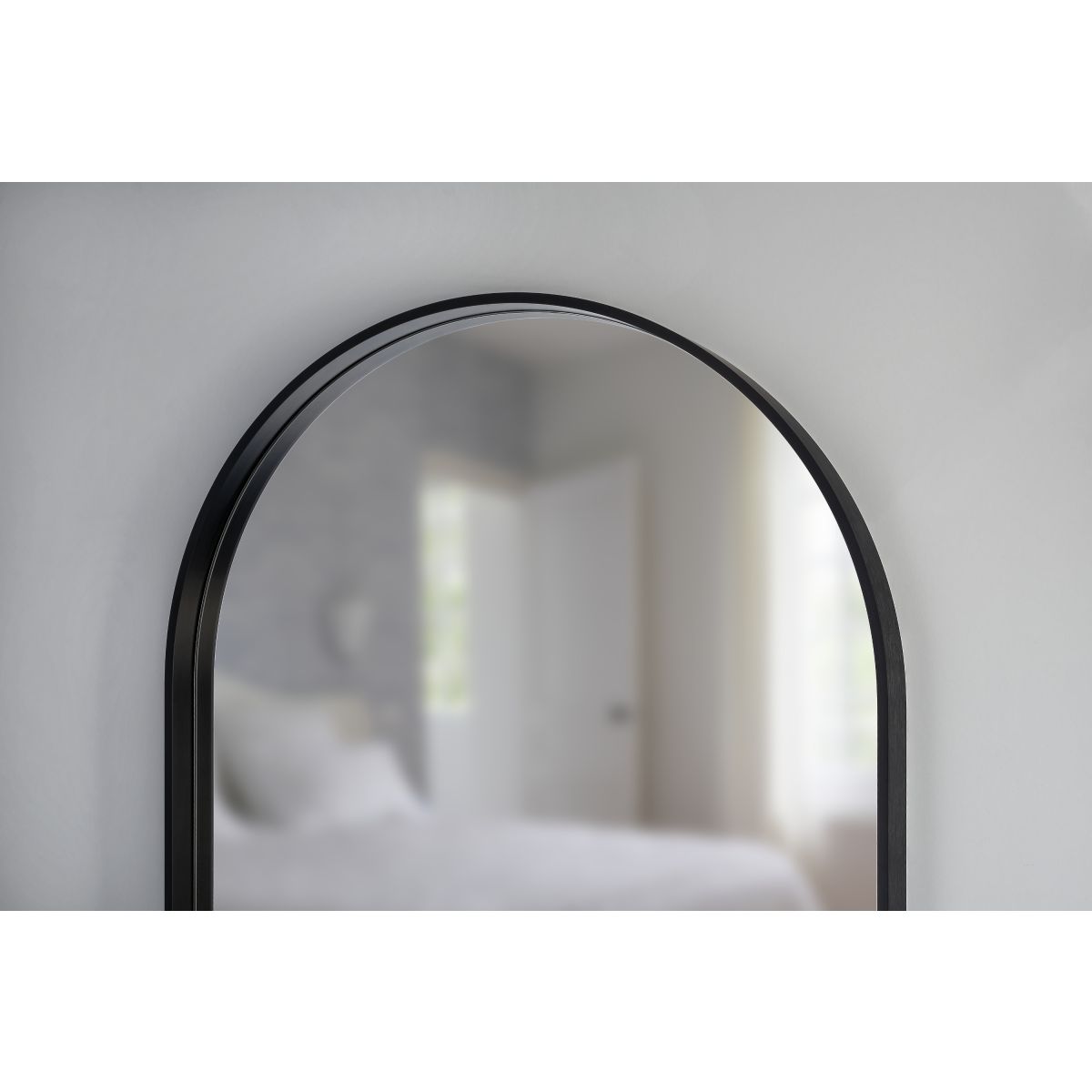 - oglindă ovală într-un cadru negru din aluminiu periat