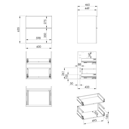- cufărul poate fi folosit ca lavoar folosind blatul de lucru, lavoarul de blat și trapa de deșeuri care economisește spațiu