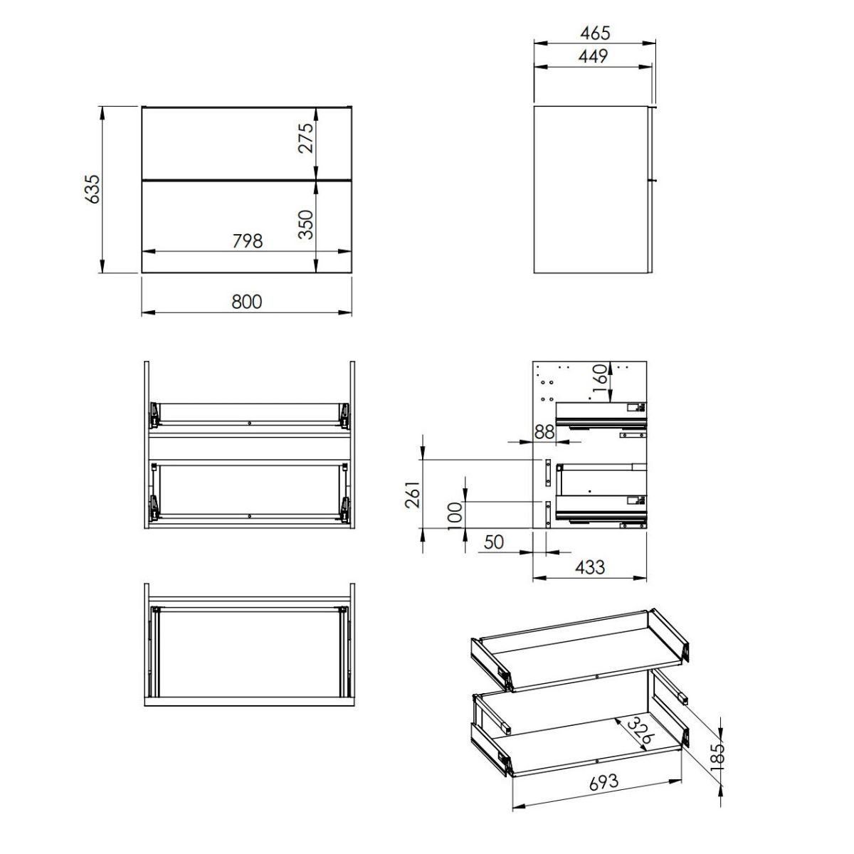 - partea frontală și corpul sunt realizate din placă laminată de 16 mm