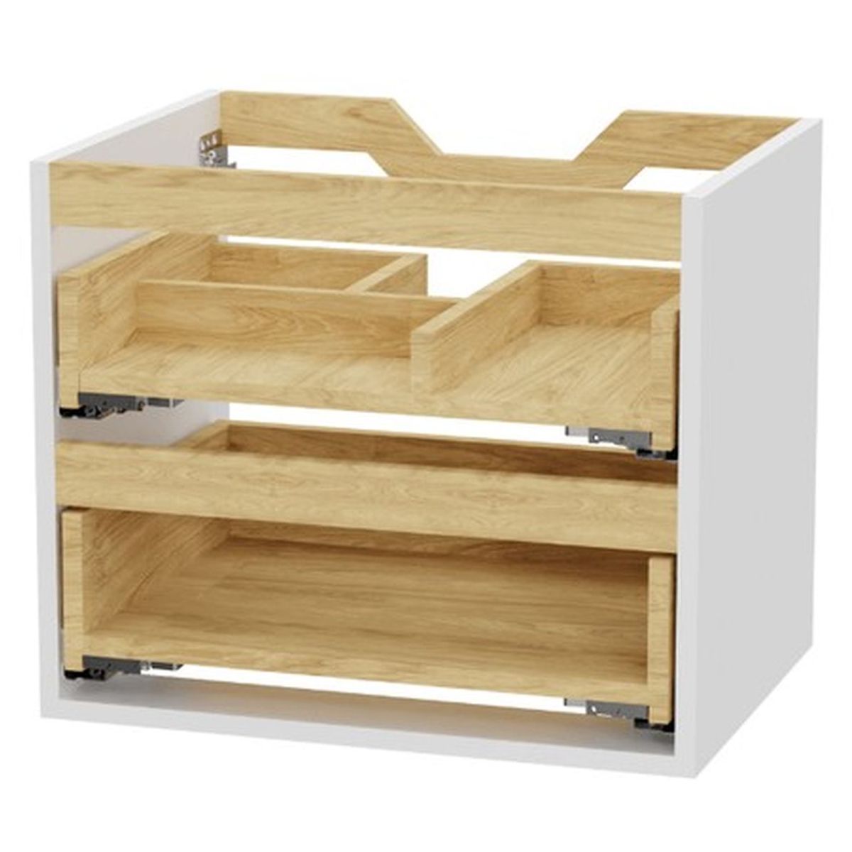 Două sertare încăpătoare - ideale pentru organizarea și depozitarea obiectelor esențiale din baie.