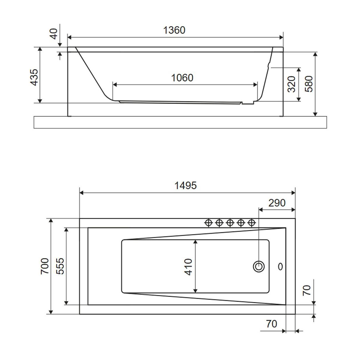 Excellent Wave cada dreptunghiulară 150x70 cm alb WAEX.WAV15WH