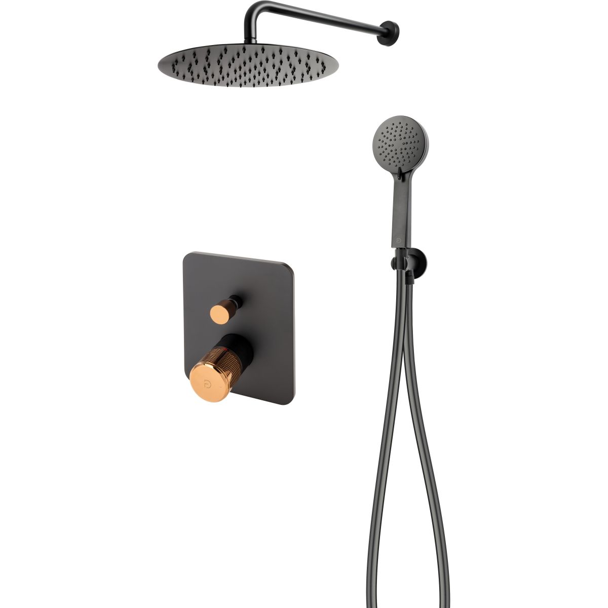 FDesign Ardesia set de duș ascuns cu duș de ploaie negru-auriu FD1-ARD-7PSET1-25