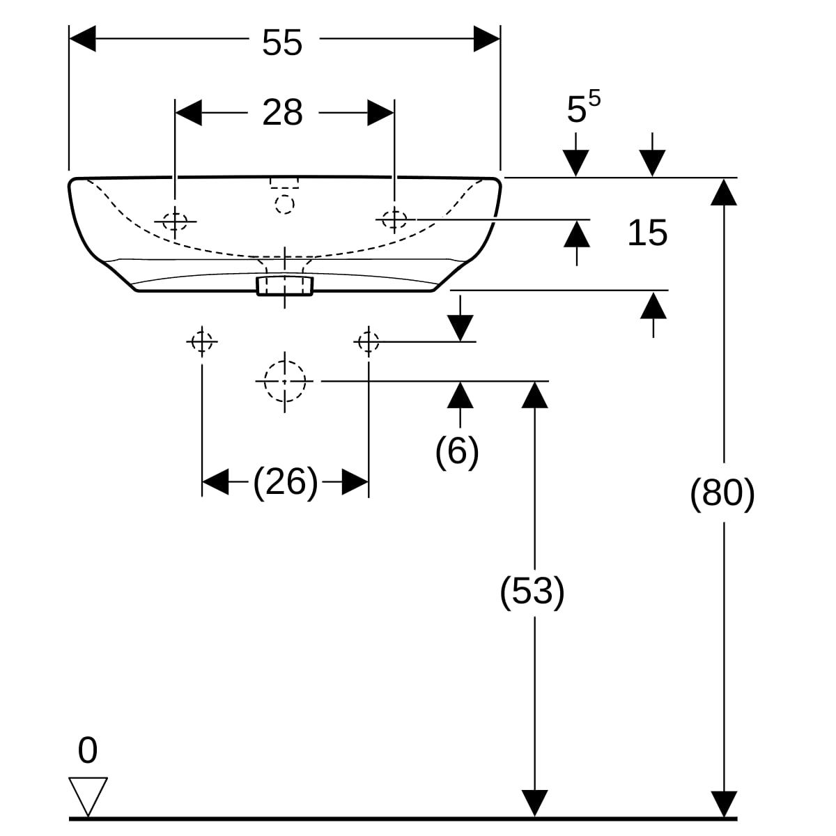 Geberit Selnova Compact lavoar 55x55 cm pătrat clasică pentru persoane cu dizabilități alb 501.461.00.7