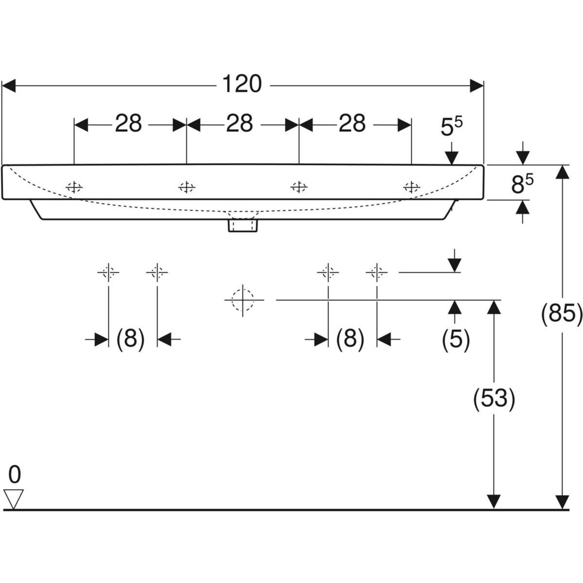 Geberit Smyle Square lavoar 120x48 cm dreptunghiular clasică-mobilier-încastrat alb 500.253.01.1