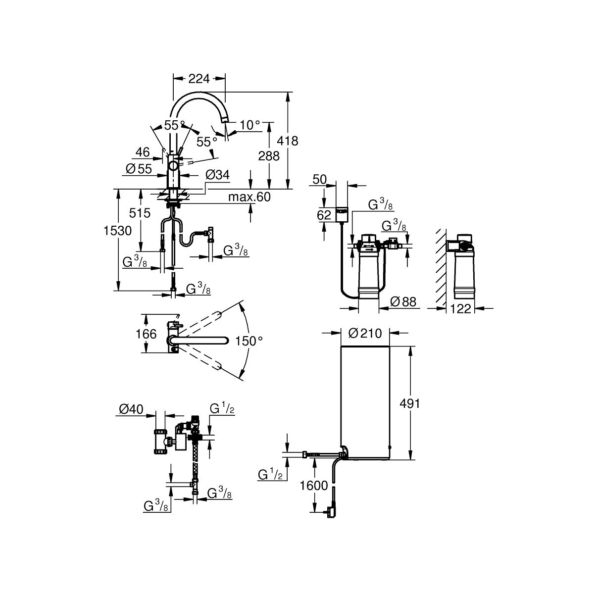 Grohe Red baterie de bucatarie cu boiler pe picior StarLight Chrome 30079001